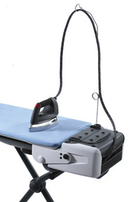 Dank des professionellen Halters stören der Dampfschlauch und das Netzkabel nicht beim Bügeln.